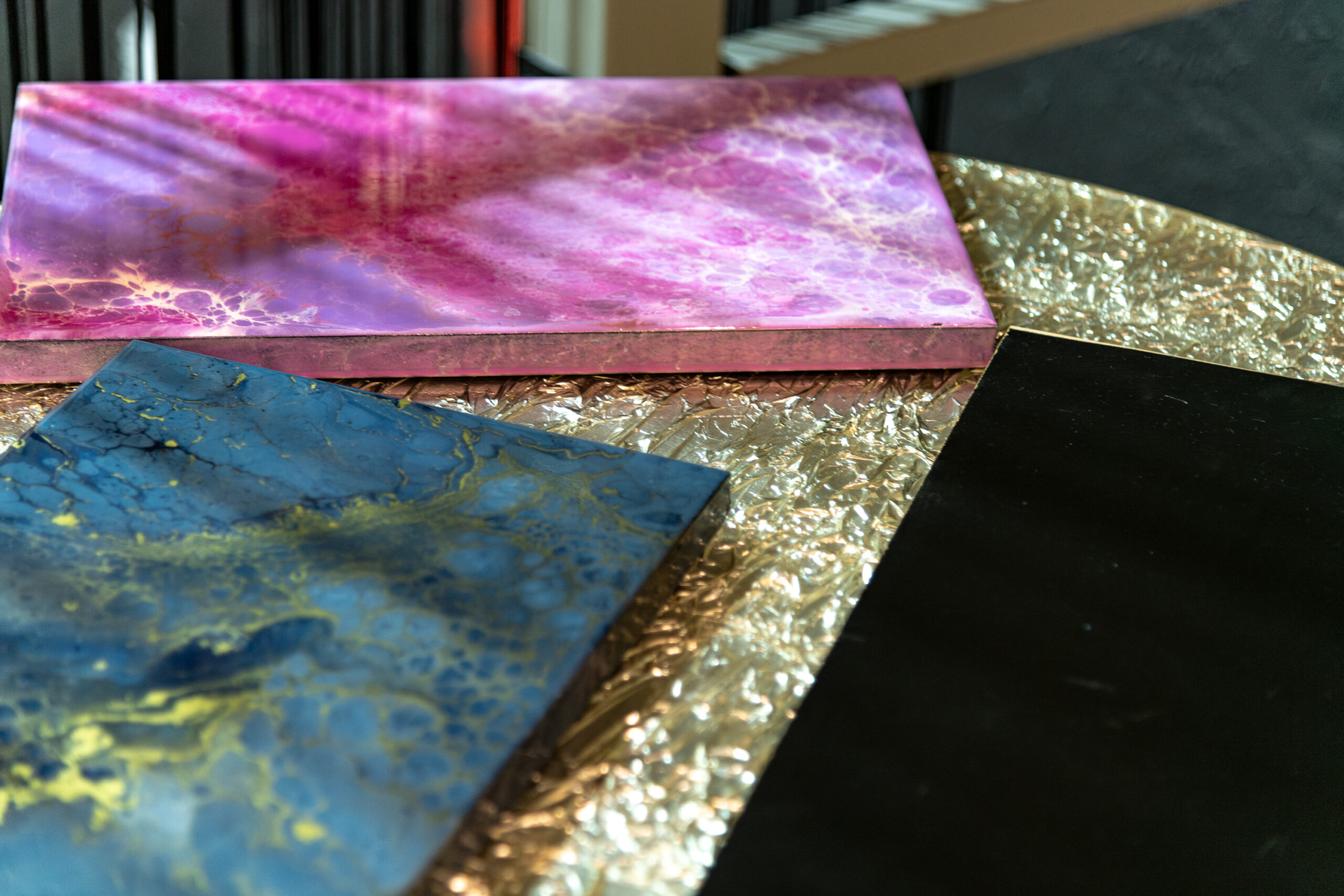 La scelta dei materiali è un momento centrale del processo. Accompagniamo il cliente nella valutazione di resine, finiture e combinazioni cromatiche, mettendo a disposizione una campionatura ampia e aggiornata. Ogni proposta viene testata e selezionata per garantire affidabilità tecnica e resa estetica nel tempo.